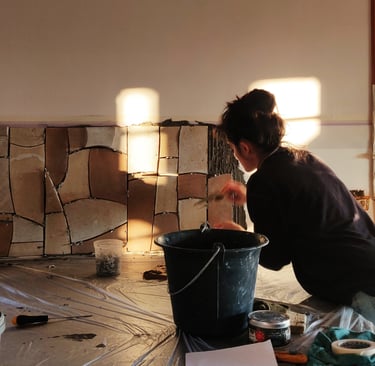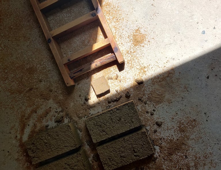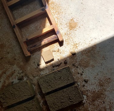 Fabrication d’une crédence sur mesure en grès Médocain – Émail de terre vitrifiée et cendres de cheminée, 2025/2026.