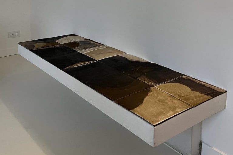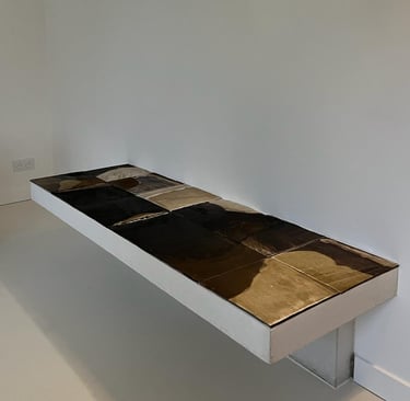 Fabrication d’une crédence sur mesure en grès (Thierry Doublet) – Émail : Terre de Mauriolle vitrifiée et cendres de cheminée, 2024/2025.